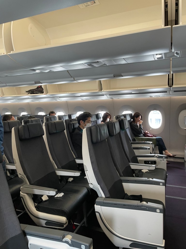 機内は6割位の搭乗数。そして久々のスープもいただけました。エアバス350国際線仕様なのか映画も見れて久々のフライトを楽しむことができました。