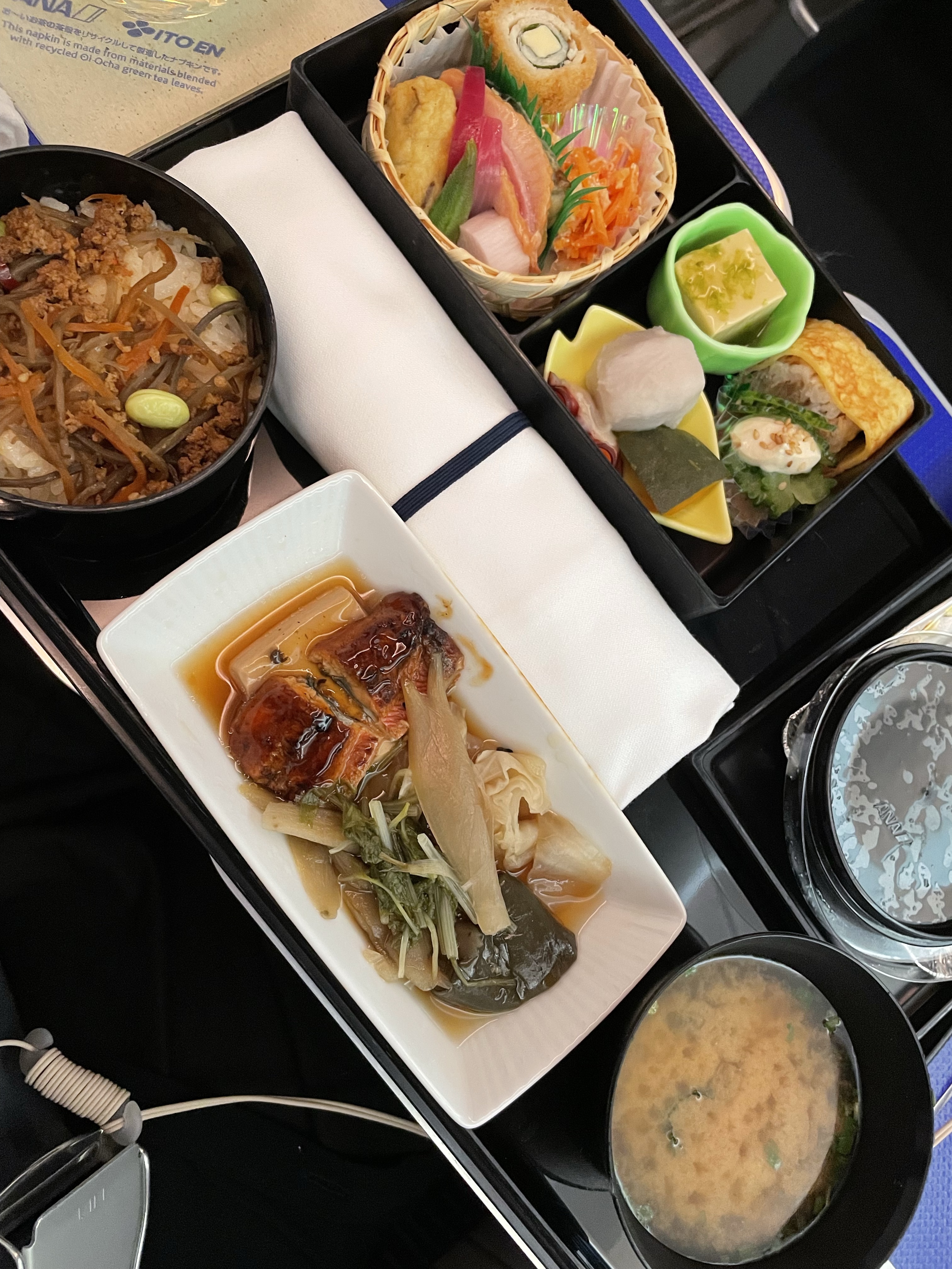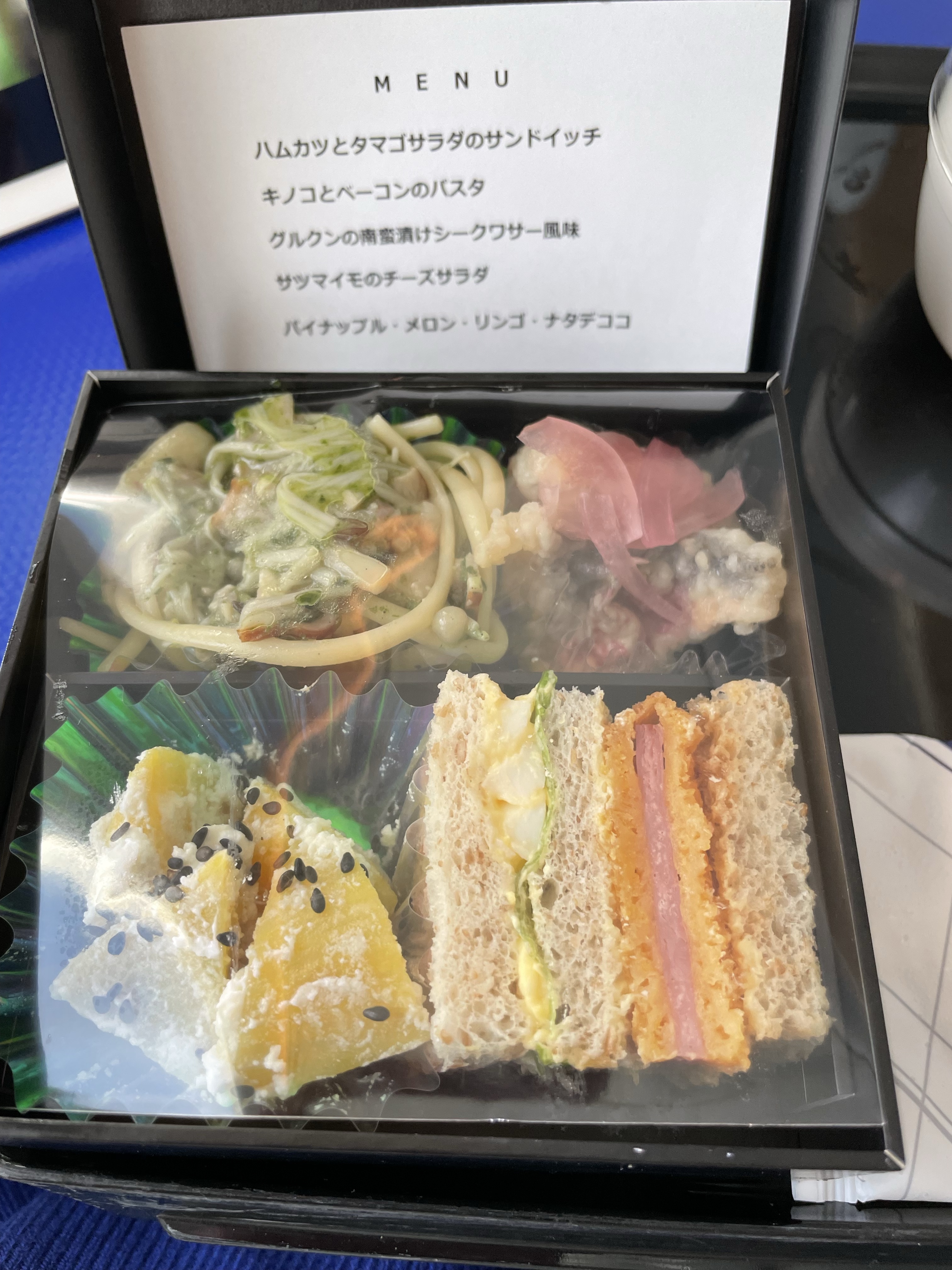 朝はゆっくり朝食を頂き空港に向かい、ランチは沖縄で人気のポーたまを購入し機内で頂きました。羽田から沖縄への便は17時を過ぎた便にしてファーストクラスで贅沢な夕食とアルコールを頂きながら沖縄に戻るようにしました。ポイント率が高い事と夕食を別に食べにいかないで済むので一石二鳥と考えました。