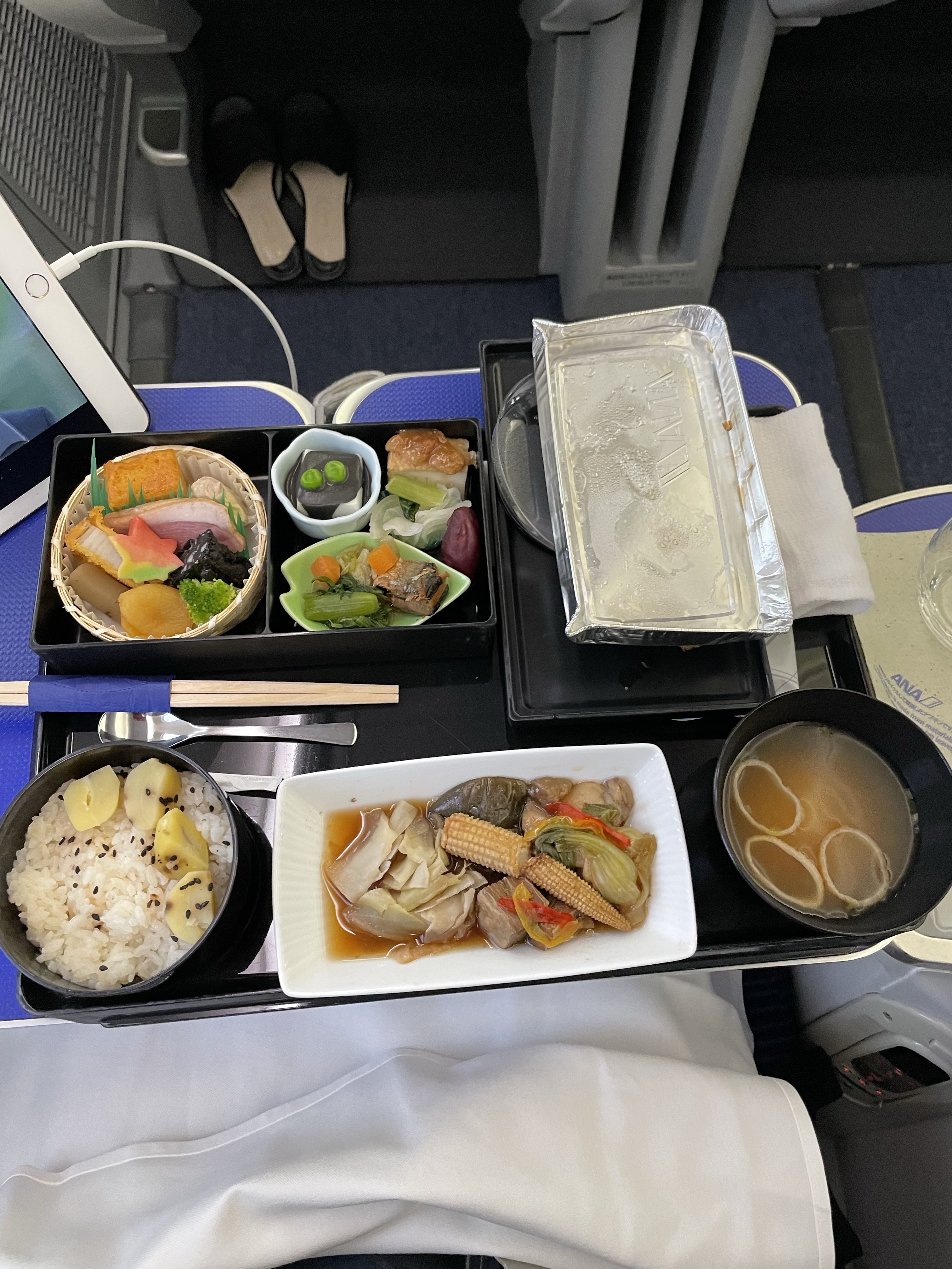 結局もう1日延泊する事に。 ここ最近JGC取得という名目もあったため赤い色とシートは黒で目が慣れていたためか、全日空カウンターの青が新鮮というより緊張感とアウェイ感満載で始まりました。空港カウンターもいつもの景色と違う蓬莱の店舗の赤を見て安心してみたり本当に変な感じなのです。機内に入っても色が違う〜最初の1日目は本当に緊張しました。